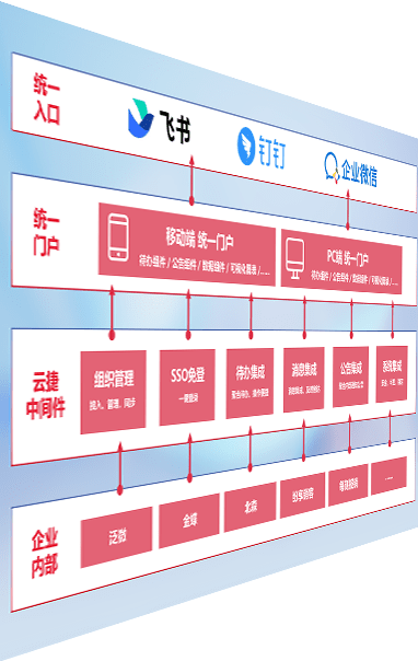 对协作平台提供支持服务,,,支持企业应用与协作平台对接,,包含组织同步、、、、消息集成、、、、待办集成等。。。。支持目前主流的协作平台:钉钉、、企微和飞书。。。。